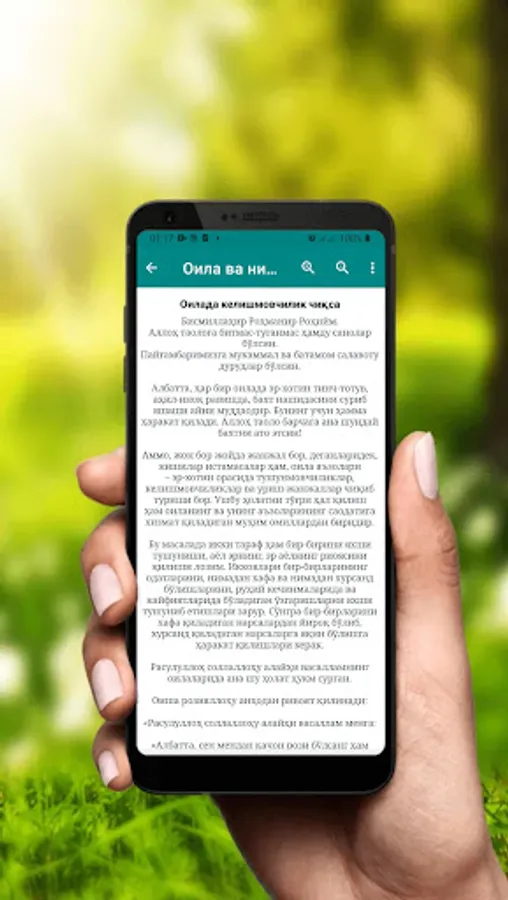 Ainan shuning uchun dinimizda oila masalasiga benihoya zhiddiy etibor karatiladi, uning mustakkamligi, er-hotin ўrtasidagi mehr-muҳabbat davomiyligini ta’minlash uchun dinimiz Islom ўziga khos konun-қoidalarni zhoriy қўygan. Oilaviy khayotning asosiy tashkilotchilari va a’zolari bulmish er va hotinning har biriga uziga hos burch va vazifalarni yuklagan, bir-birlariga nisbatan ҳақ va ҳуқуқlarni belgilab bergan. Agar er va hotin mazkur qoidalarga amal qilishsa, bir-birlariga nisbatan zimlaridagi burch va masuliyatlarini his qilib, sidqidildan ado etishsa, bundai oila bakht va saodat qasriga aylanadi.