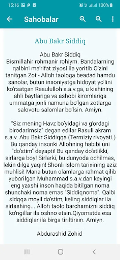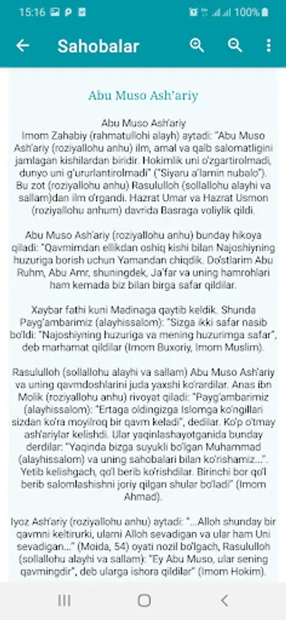 Sahobalarni yaxshi ko'rish va ularni payg'ambarlardan keyin eng afzal insonlar bo'lgan, deb e'tiqod qilish har bir musulmonning burchi hisoblanadi. Chunki ular muqaddas Islom dinini butun bashariyatga etkazish yo'lidagi barcha mashaqqatlarni zimmalariga ko'targan hamda bu vazifani to'la-to'kis ado etgan zotlardir. Shuning uchun dinini ulug'lagan har bir musulmon ularni ham ulug'lashi lozim bo'lib qoladi.