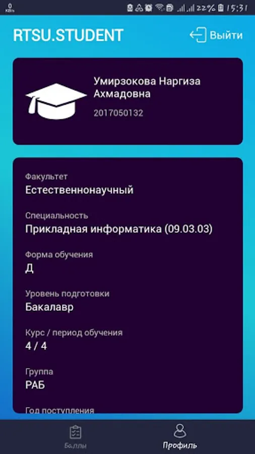 The RTSU.STUDENTS application is a personal account of a student of the Russian-Tajik (Slavic) University on a smartphone.