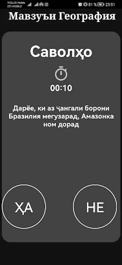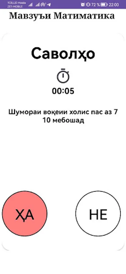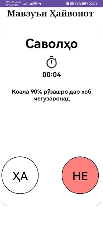 Dar in barnoma masalaho va savolhoi jolib vorid karda shudaand, ki shumoro ba fikr kardan vodor mesozad. In barnoma ҳam baroi kalonsolon va kodakon, honandagon va donishҷӯyon muvofiқat mekunad. Dar barnoma shumo du variant doren ("ҲА" Ё "NOT") -intihob mekuned. Umedvoram ba shumo mahqul khohad shud
