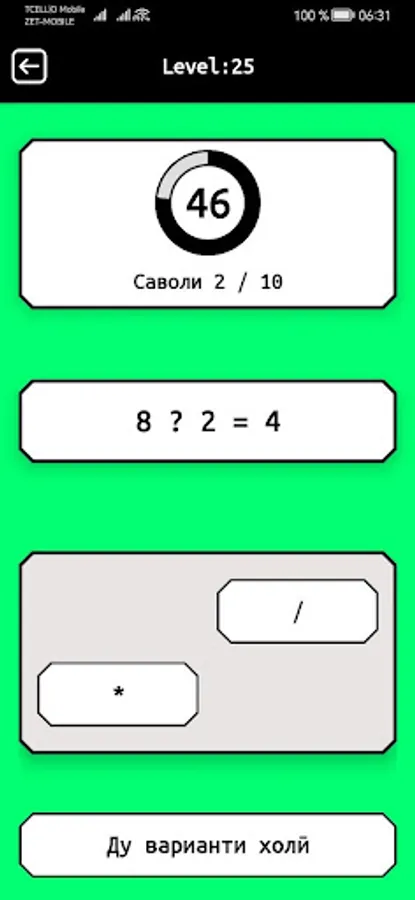 Gift of barnoma savolhoi shavkovar vorid karda shudaast, ki shumoro baroi az hud kardani matimatikai oson ҷam, tarҳ, zarb, va taқsim yori merasonad. mekunad.