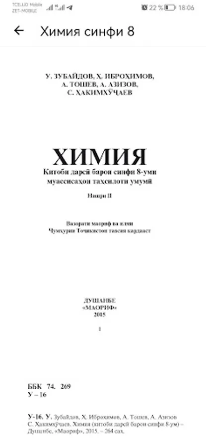 Kitobi darsia Chemistry baroi sinfoi 8 9 10 11