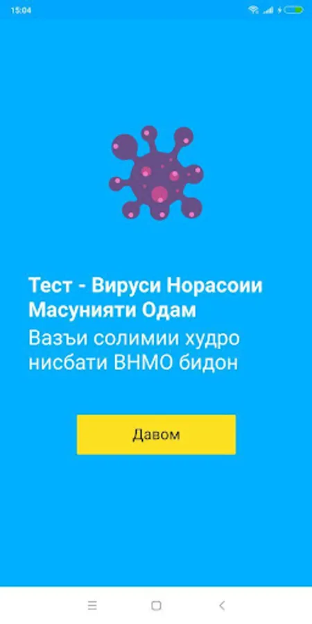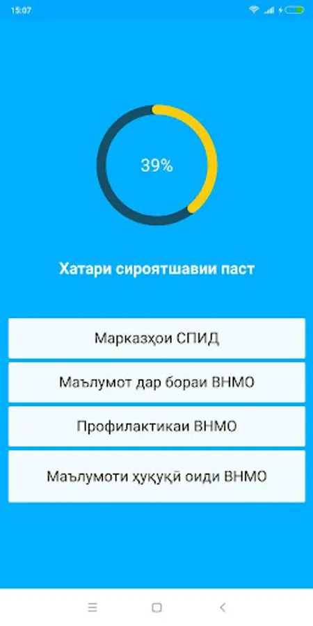 Today, one of the main problems is the growth of the HIV epidemic in Tajikistan and in the world, that everyone can become infected with HIV regardless of their social status, gender and lifestyle. The purpose of the VNMO sanjish application is to take a person online to offline and encourage them to take an HIV test in real life. Now everyone can download the application in their mobile, convenient and anonymous way to assess the risk of infection and find the nearest testing point. ”