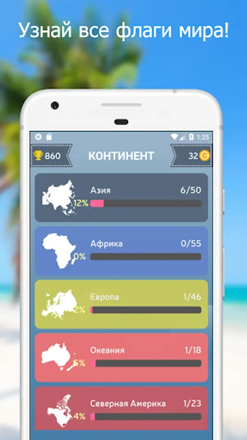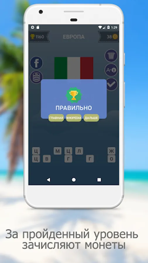 For each successful recognition of a flag, coins are credited, which can be spent on hints.