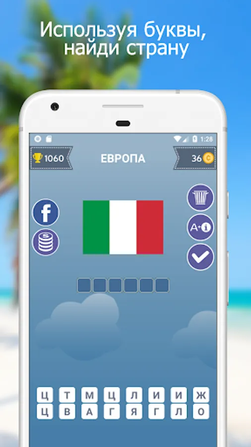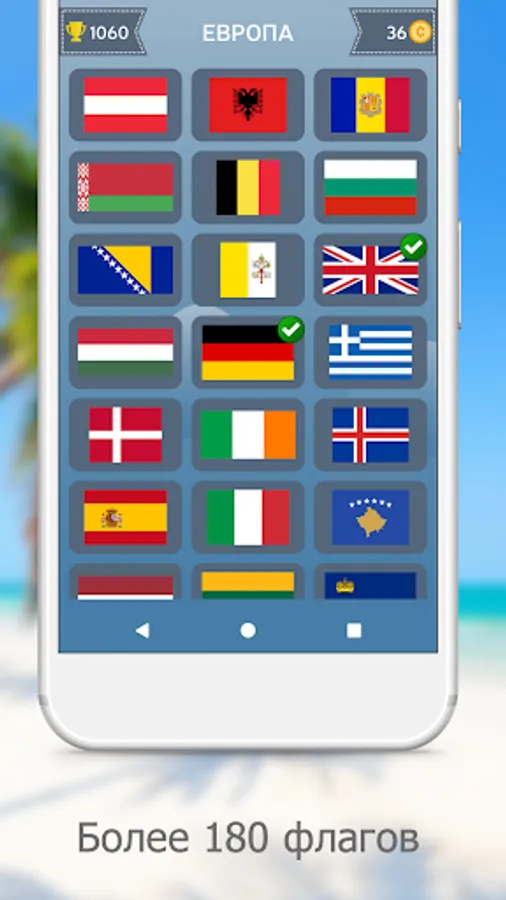 In this game, there are 180 flags of the most diverse countries of the world, ranging from the largest and richest to the small countries of Asia and Africa.