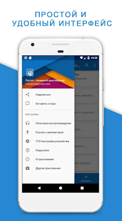Russian - German PhraseBook - an application that helps to communicate with people in Germany and other countries who speak German. It helps to build communication even in the complete absence of any knowledge and simplifies rest, life and work.
