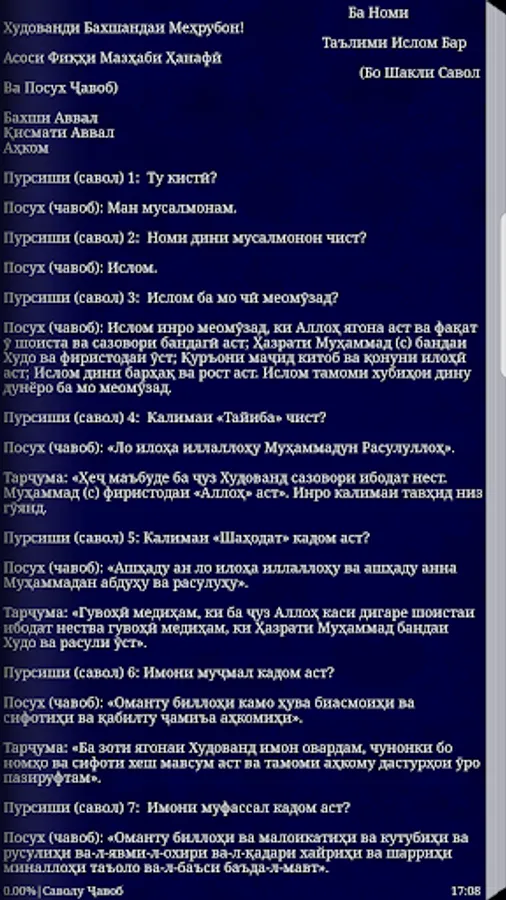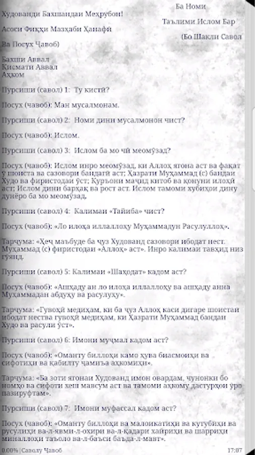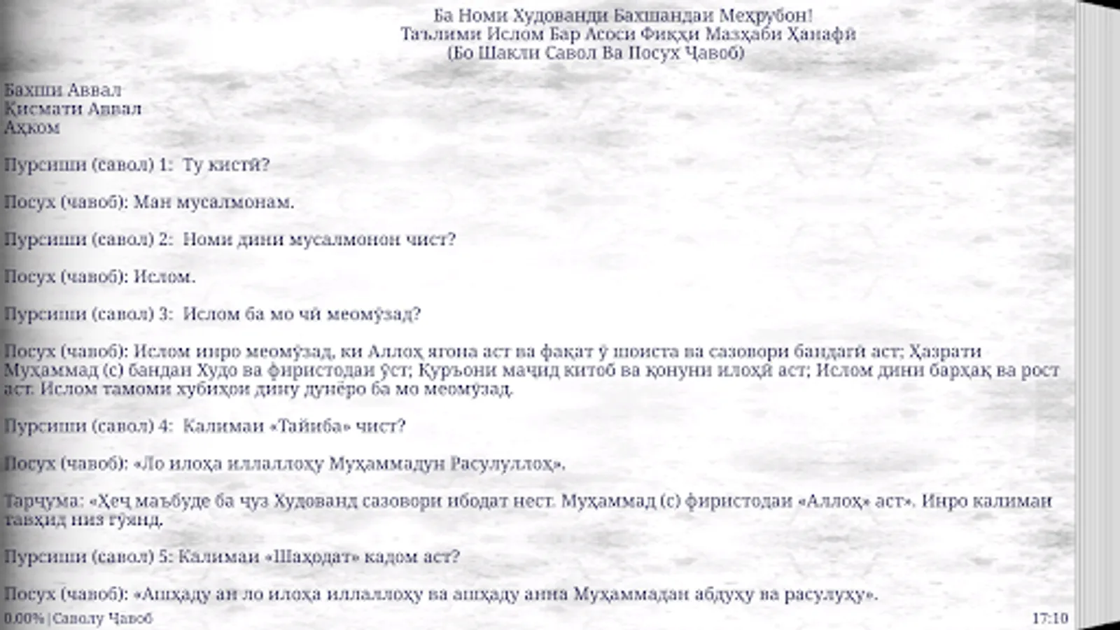 Savola Ҷavobi Islom-Bar ASOS Fiқҳi Mazҳabi Ҳanafi.