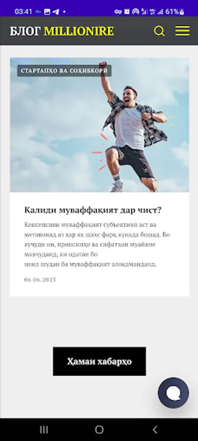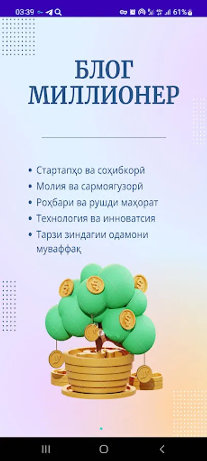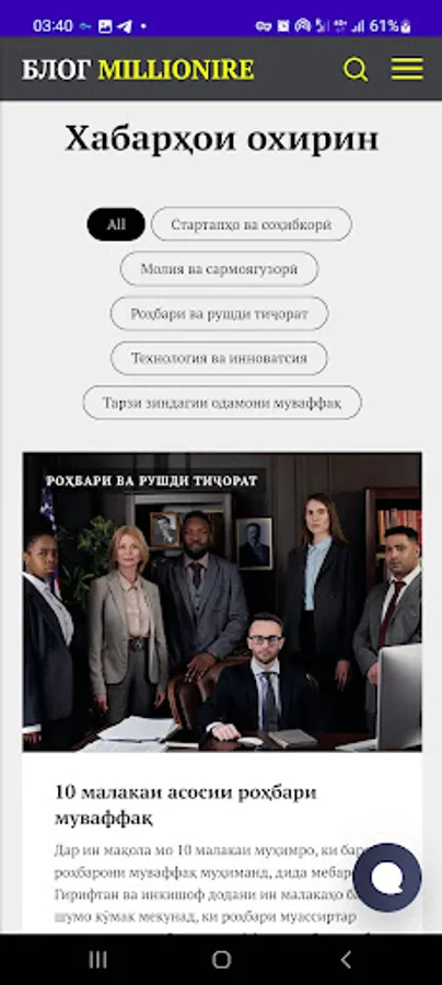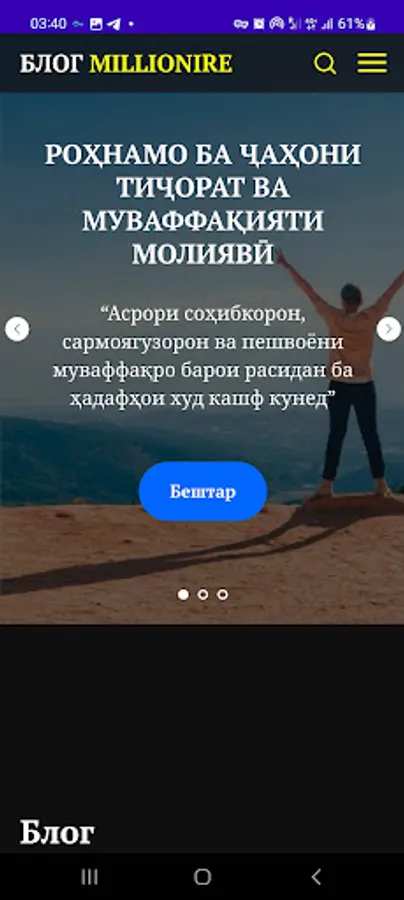 Барномаи Блог MILLIONAIRE ба шумо роҳи осон ва қулайро барои дастрасӣ ба мундариҷаи муфид ва илҳомбахш дар бораи тиҷорат ва муваффақият пешкаш мекунад. Аз хабарҳои охирин огоҳ бошед, малакаҳои худро инкишоф диҳед ва бевосита аз дастгоҳи мобилии худ ба натиҷаҳои олӣ ноил шавед.