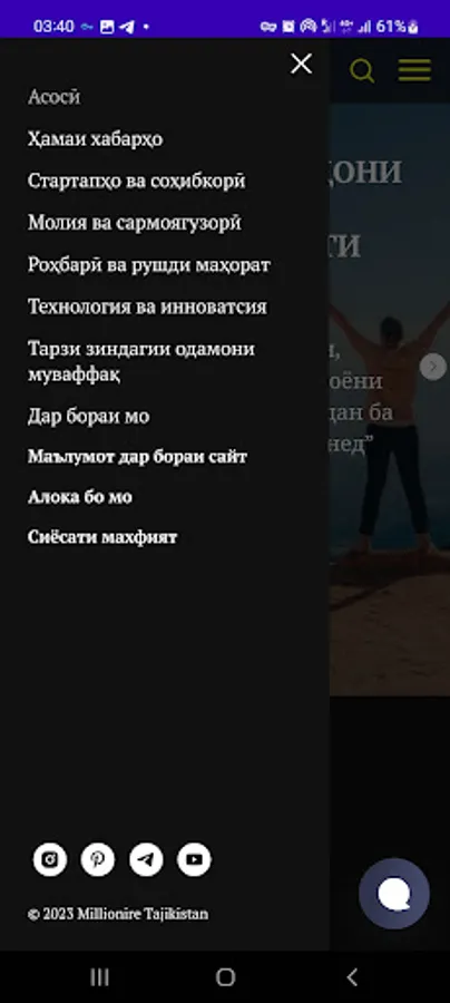 2. Ҳамагуна маълумот дар роҳи расидан ба муввафақият: Барнома тақсимоти қулайи мундариҷаро ба категорияҳо, аз қабили молия ва сармоягузорӣ, стартапҳо ва соҳибкорӣ, рушди роҳбарӣ ва малакаҳо, технология ва навоварӣ, фароғат ва тарзи ҳаёти одамони муваффақ пешниҳод мекунад. Маводҳоеро, ки ба шумо маъқуланд, дар категорияи дилхоҳ ба осонӣ пайдо хоҳед кард.