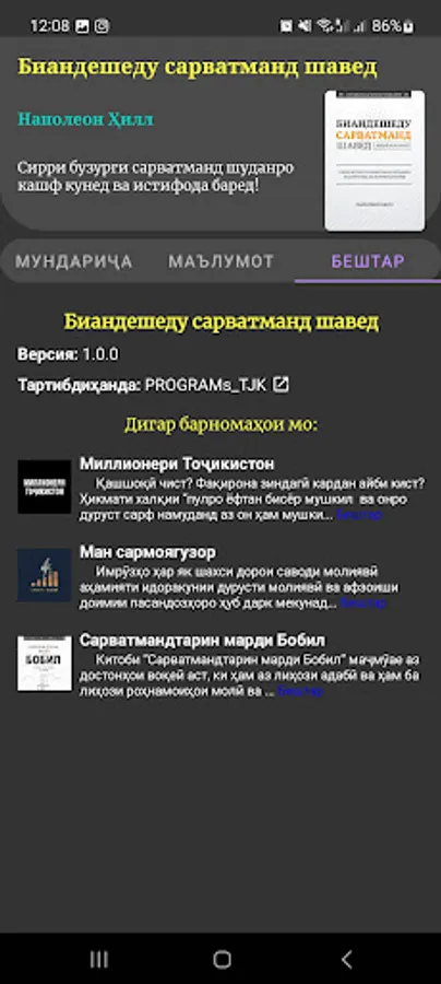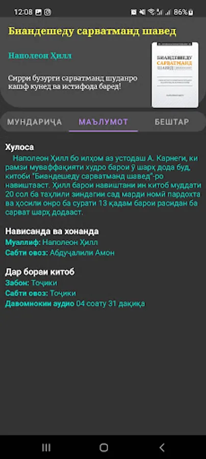 Наполеон Ҳилл бо илҳом аз устодаш А. Карнеги, ки рамзи муваффақияти худро барои ӯ шарҳ дода буд, китоби “Биандешеду сарватманд шавед”-ро навиштааст. Ҳилл барои навиштани ин китоб муддати 20 сол ба таҳлили зиндагии сад марди номӣ пардохта ва ҳосили онро ба сурати 13 қадам барои расидан ба сарват шарҳ додааст.