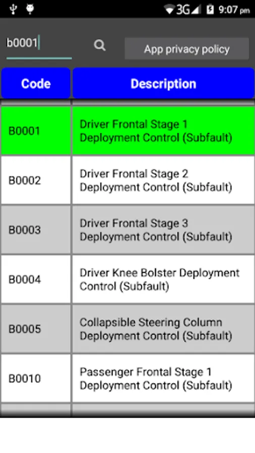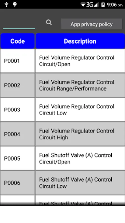 A complete list of DTC (Data Trouble Code) which is a 5-character code along with the description of each code. Just enter the code to search for its description.