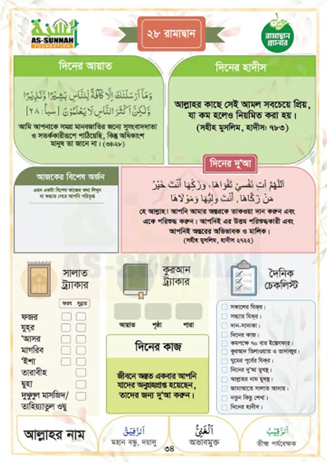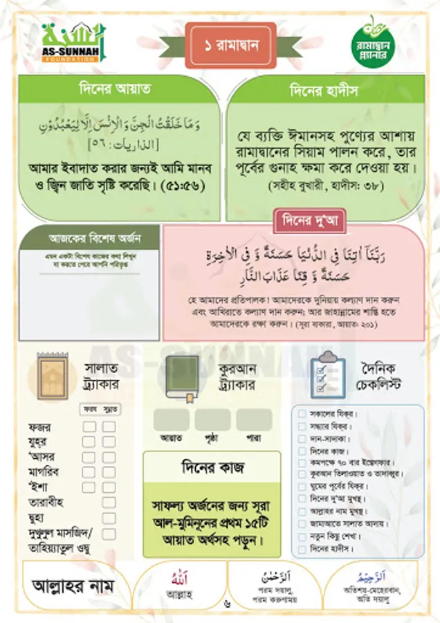 The Ramadan Planner bangla app to take ramadan preparation. Make your Ramadan daily routine planner bangla using this bangla islamic app. This Ramadan Planner Bangla is published by As-Sunnah foundation publications with Shaikh Ahmadullah. Ramadan daily routine planner bangla or Ramadan Planner bangla islamic app is ads free and free to use.