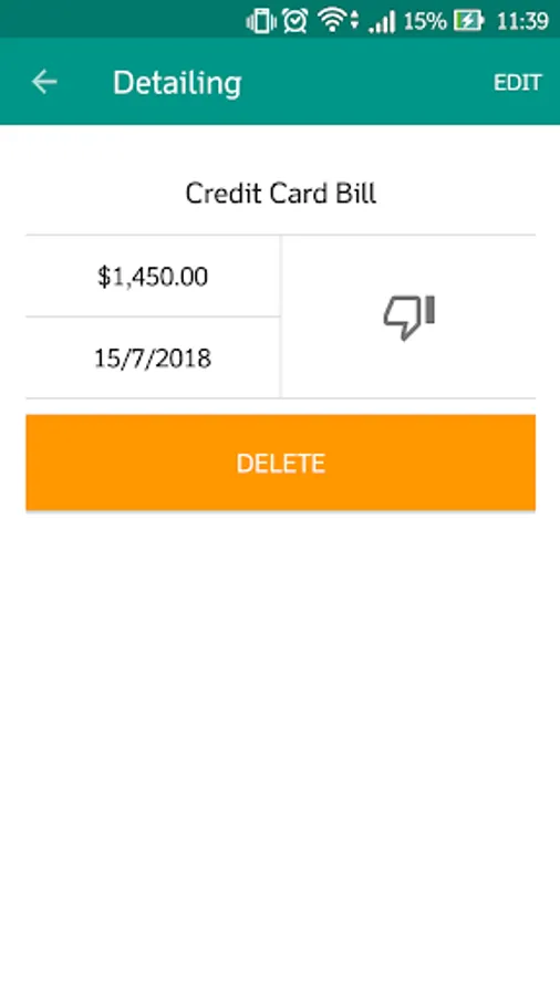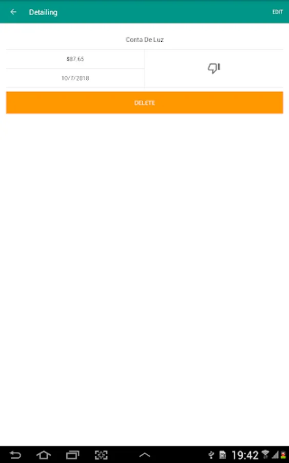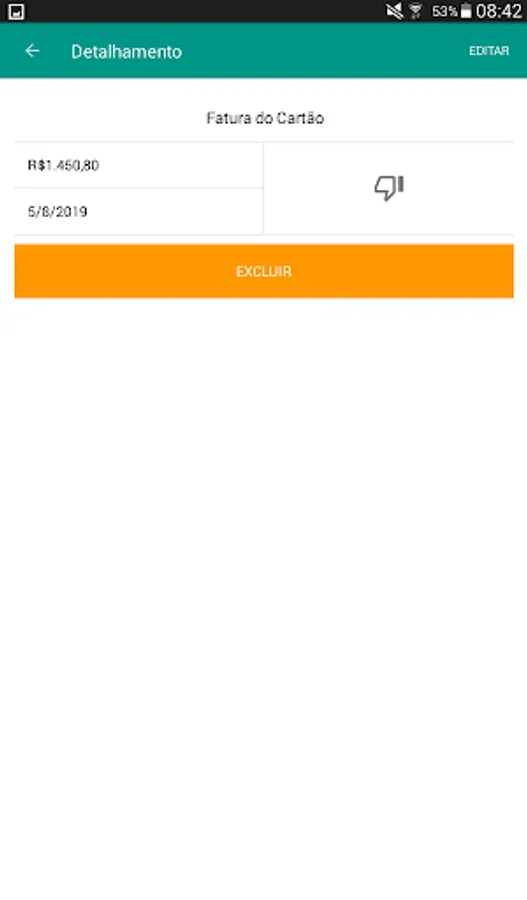 Detail Screen - displays the details of the expense. In this screen it is possible to carry out the expense reduction and it is also possible to carry out the exclusion of the expense (of all expenses, of the expenses of that month or only of the next ones). You can also request to edit the expense.