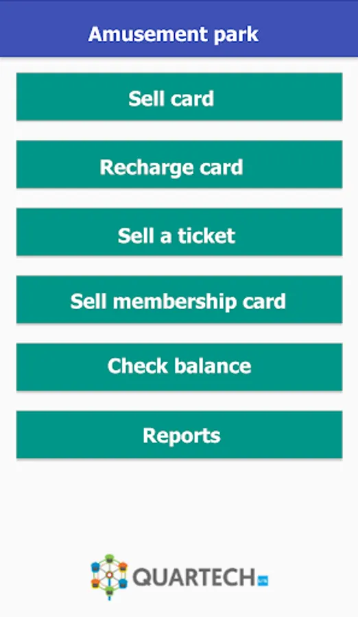 Application for working with smart terminals Barcode, version with radio readers. Allows you to sell / replenish game cards, as well as tickets with a barcode. Or organize an access control system in which radio readers control devices (turnstiles, attractions)
