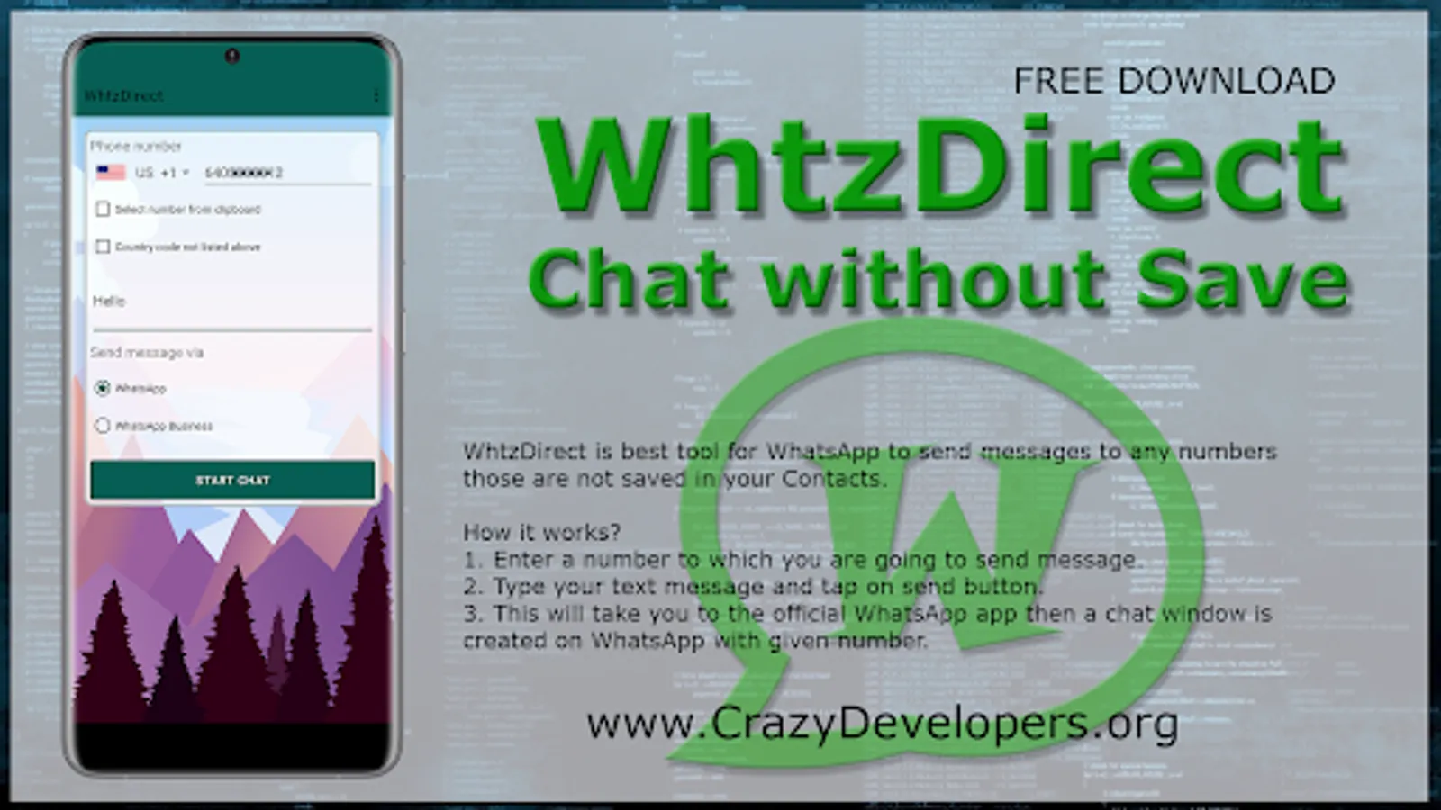 Note - This app or app developer is not associated with WhatsApp. WhatsApp is a registered trademark of WhatsApp Inc. You should follow WhatsApp's terms & condition while sending messages through WhtzDirect App.