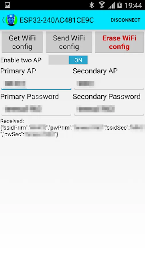This application allows you to setup the WiFi credentials of an ESP32 over a BLE connection or Bluetooth Serial connection.