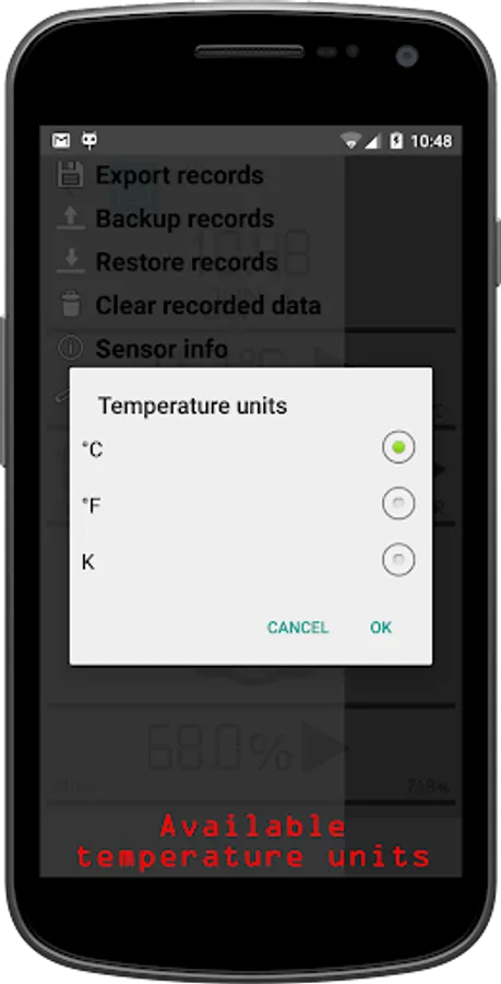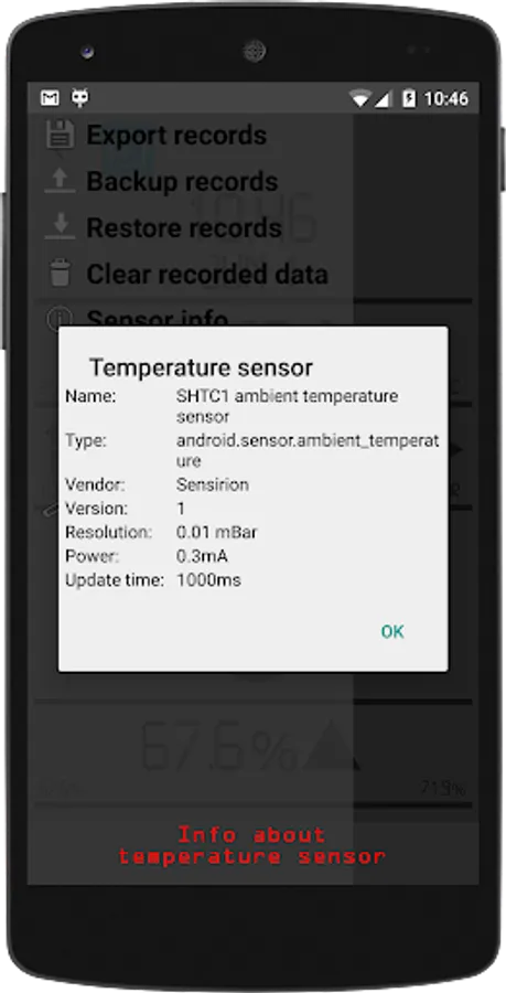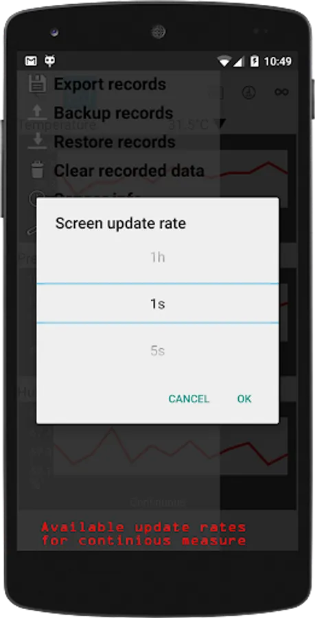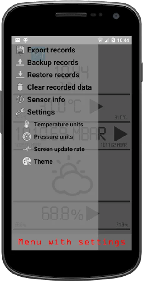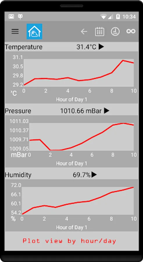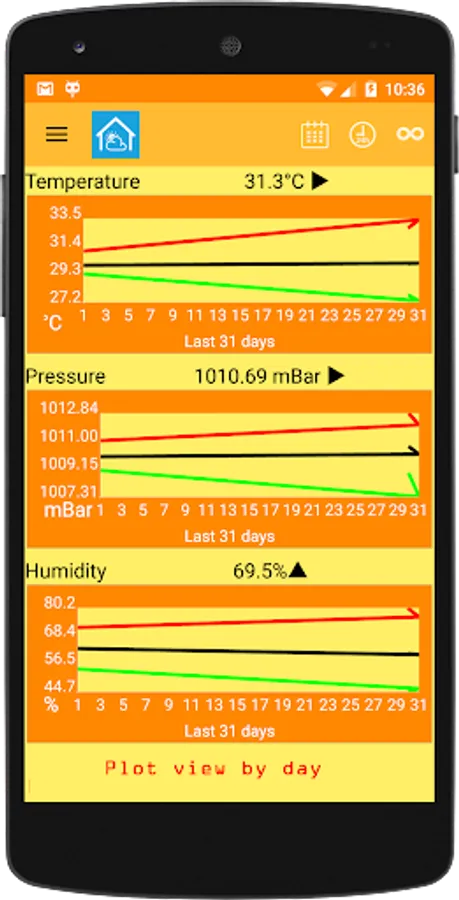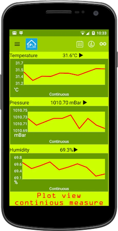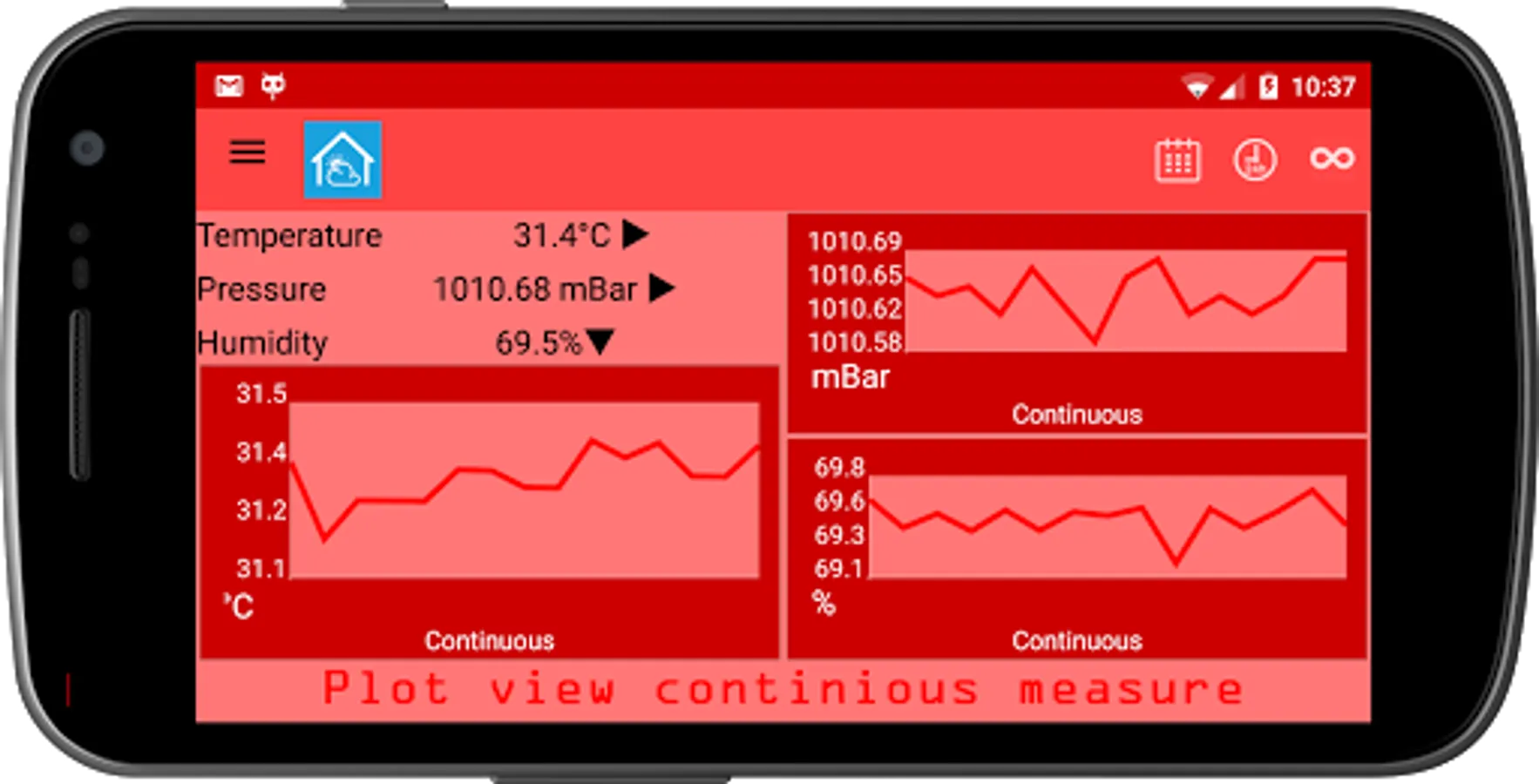 This app uses the build in temperature, air pressure and humidity sensors of the Galaxy S4 to show the current environment status and record data up to 31 days.