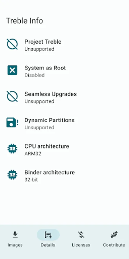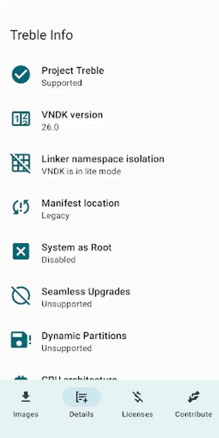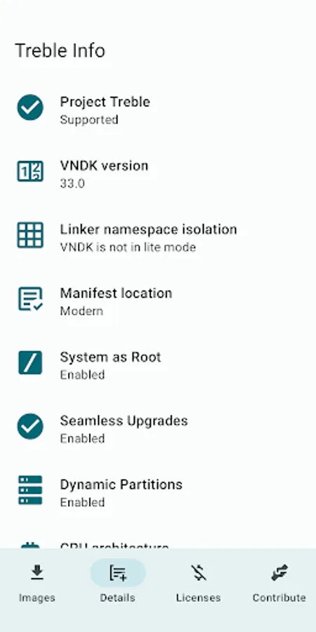 This application allows you to check the Treble GSI requirements and determine the correct GSI type for your device.