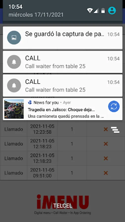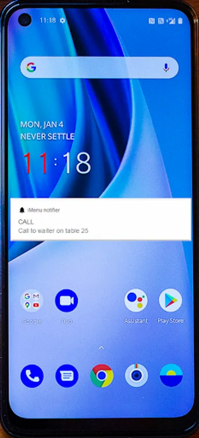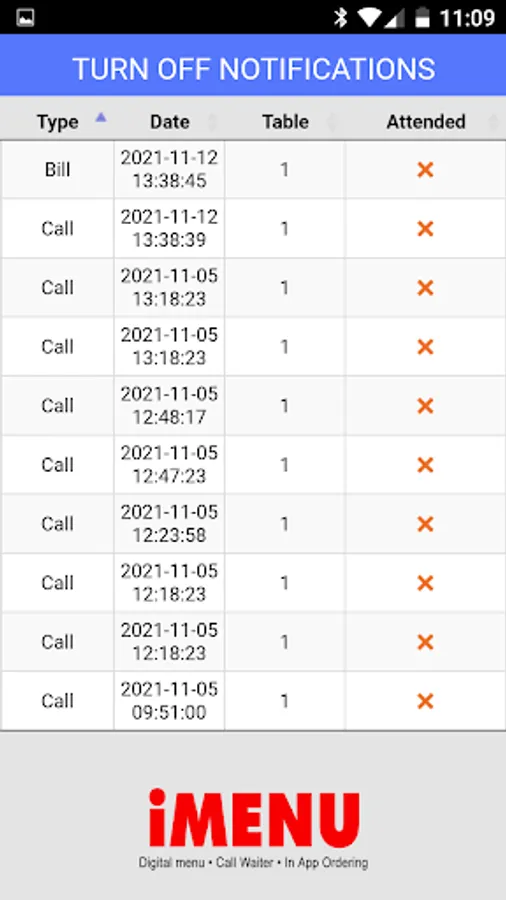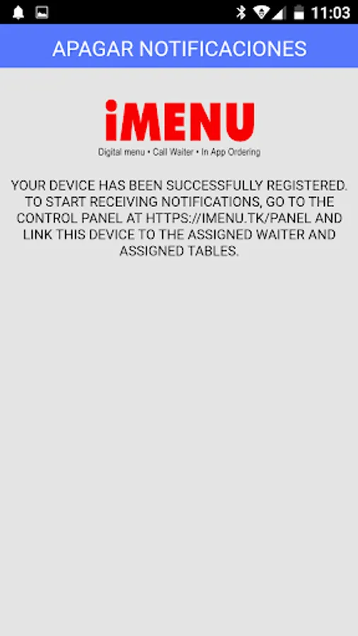 The iMenu notifier application, part of the iMenu system, is used for servers and staff to receive push notifications when customers require a server, the account or that they manage their order from their cell phone.