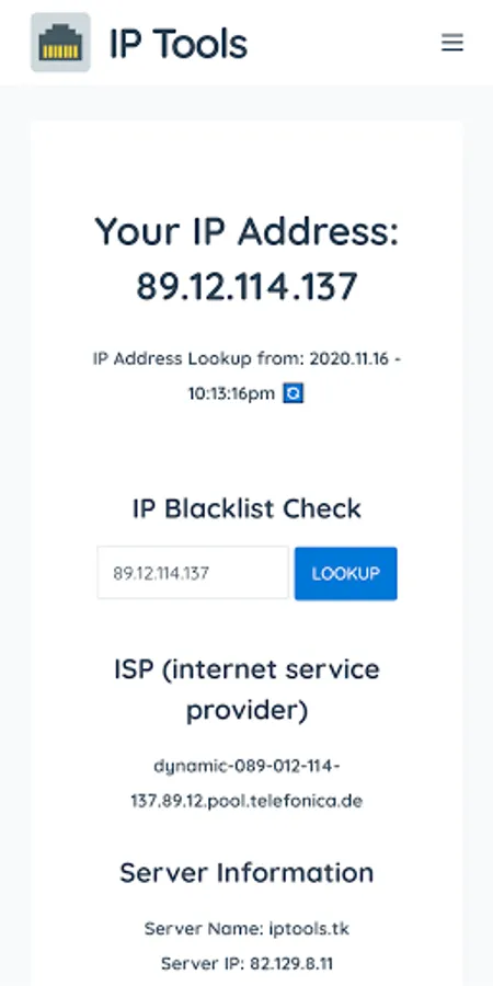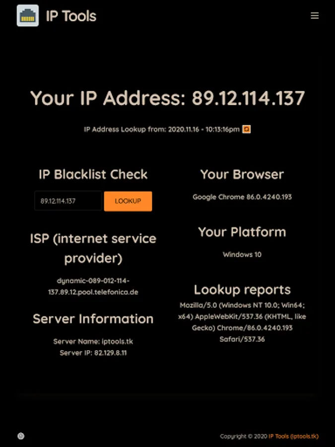 The ultimate IP Tools App now for Android. IP Lookup with Browser Data, Platform and ISP Information. IP-Blacklist Check and more features.