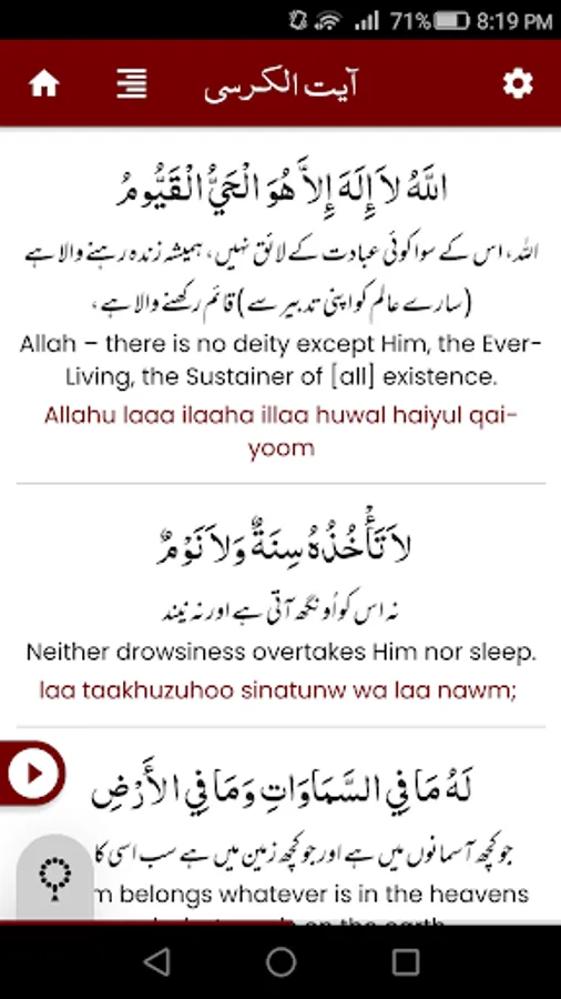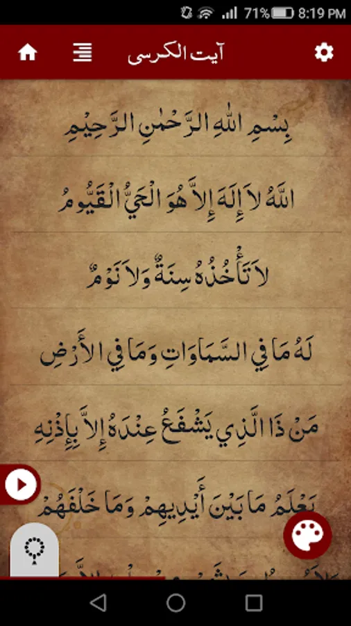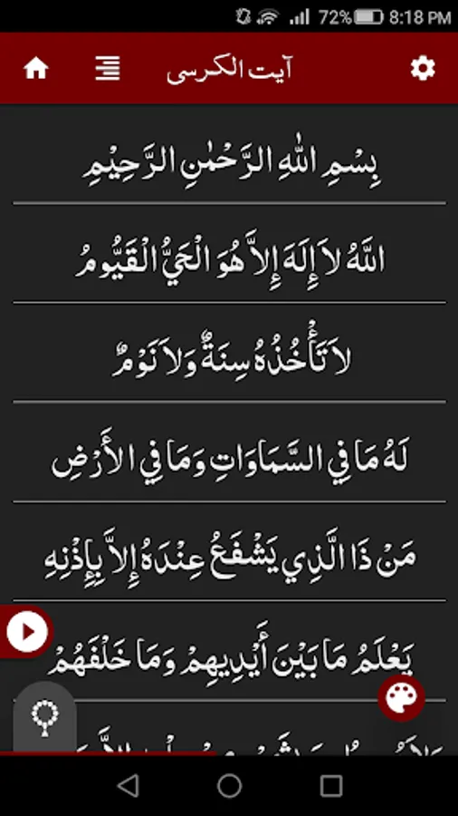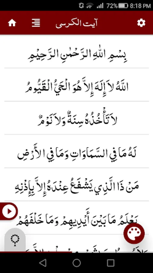 Complete offline Ayatul Kursi (آیت الکرسی) with clear font.