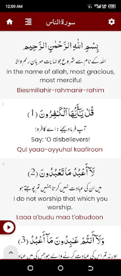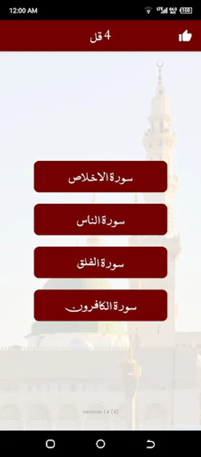 Complete offline 4 Qul (قل 4), clear font. The 4 Qul Surahs are mentioned below: