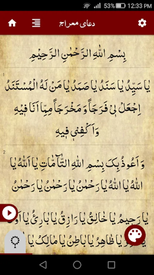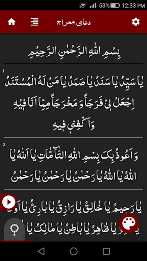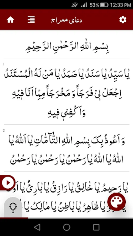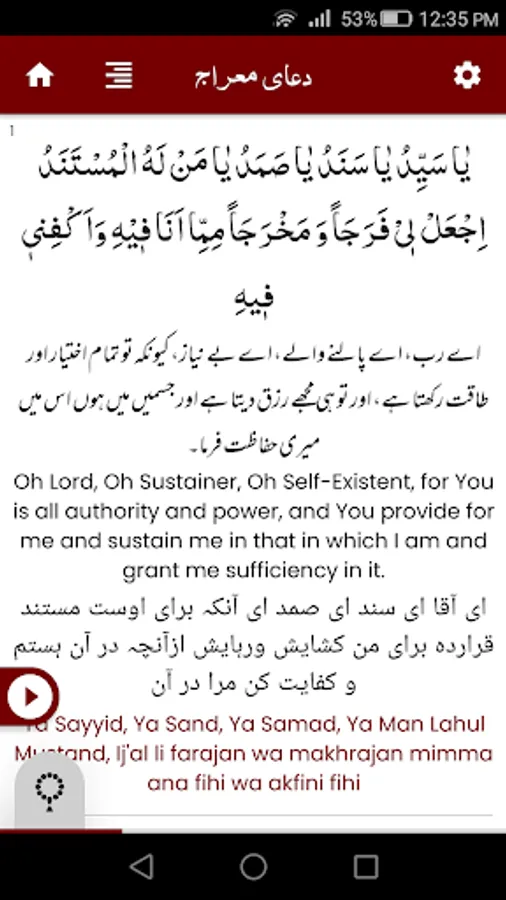 Complete Dua Meraj (دعای معراج) with Offline Audio Recitation and Clear Font.