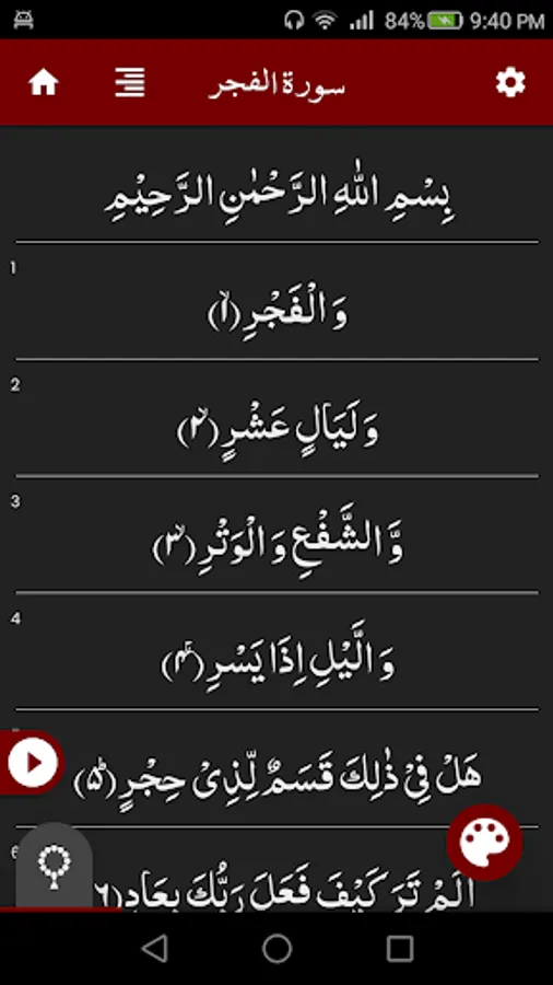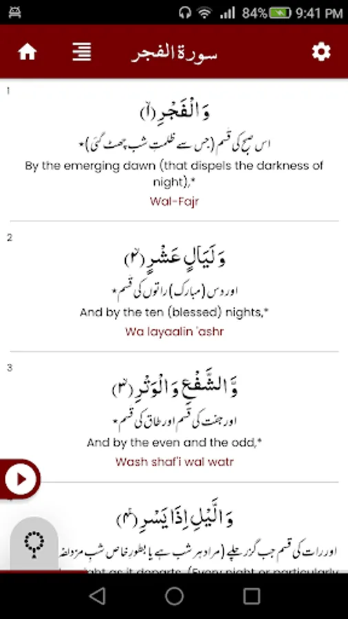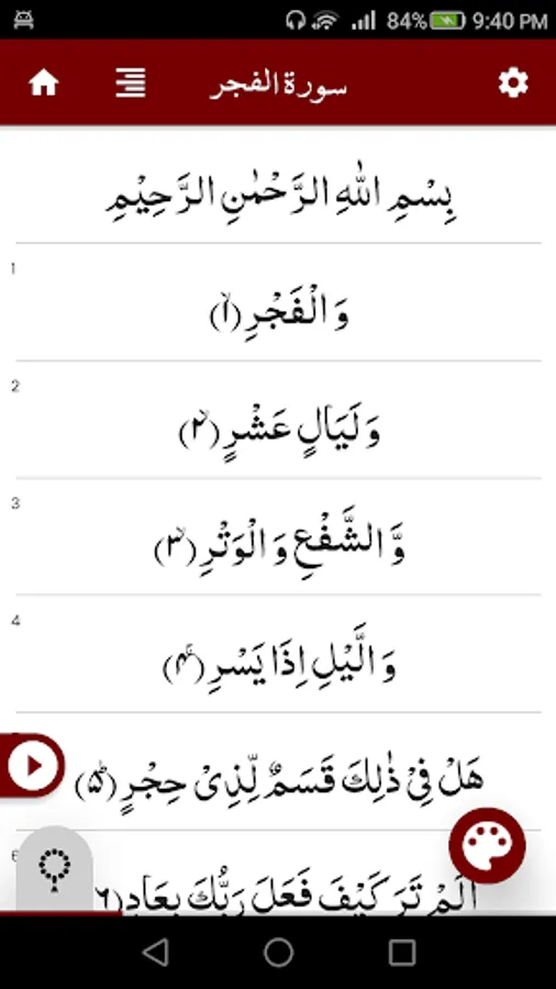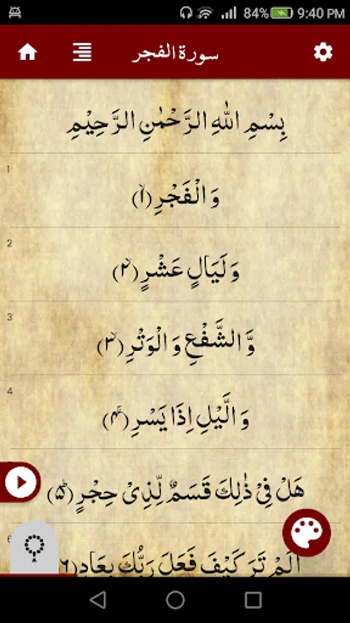 Complete Surah Fajr (سورة الفجر) with Offline Audio Recitation and Clear Font.
