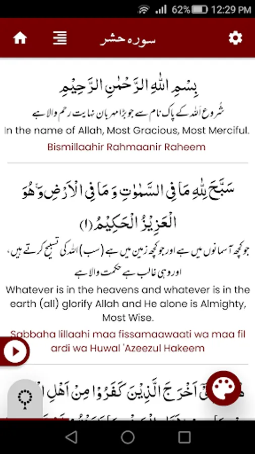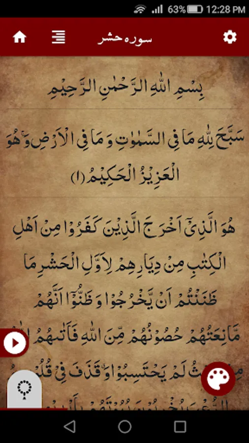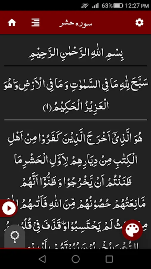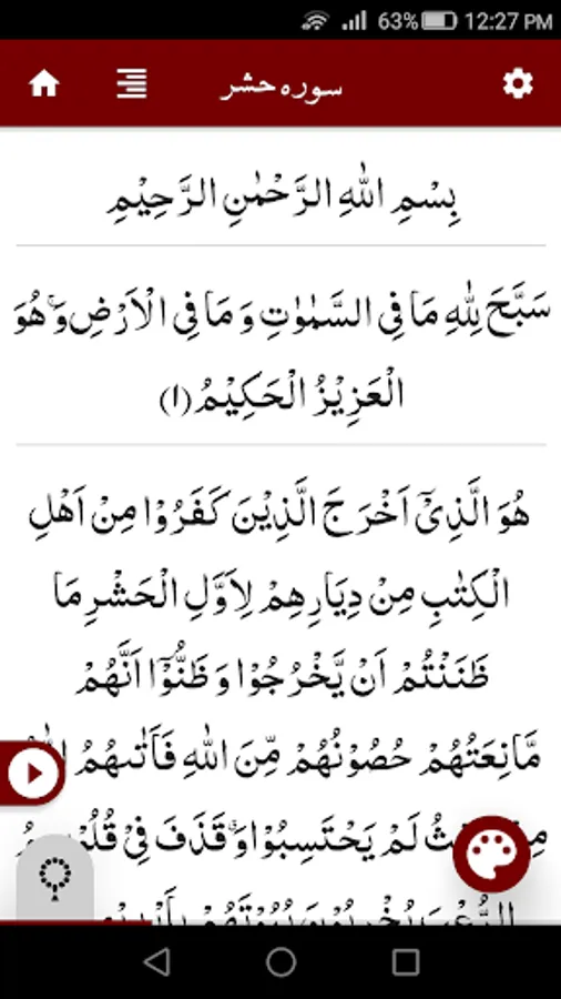Complete offline Surah Hashr (سورة الحشر) with clear font.