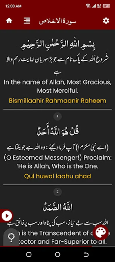 Complete offline Surah Ikhlas (سورة الاخلاص) with clear font.