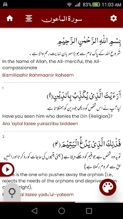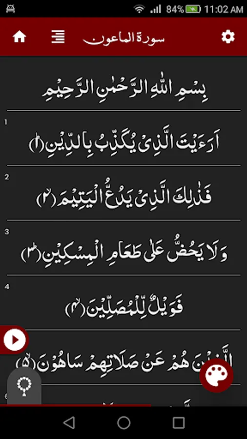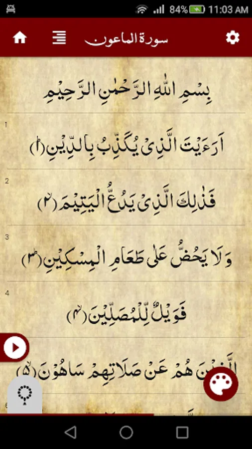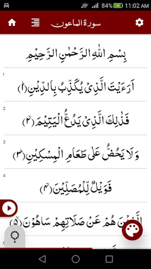 Complete Surah Maun (سورة الماعون) with Offline Audio Recitation and Clear Font.