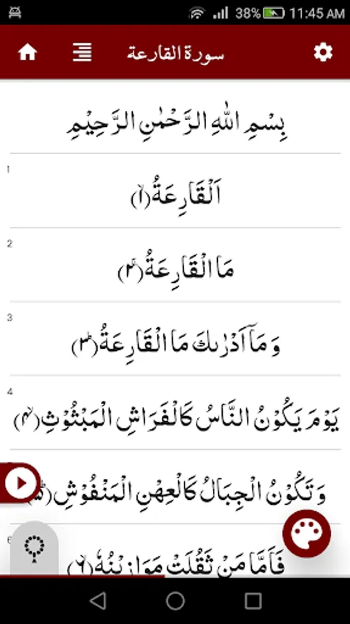 Complete Surah Qariah (سورة القارعة) with Offline Audio Recitation and Clear Font.