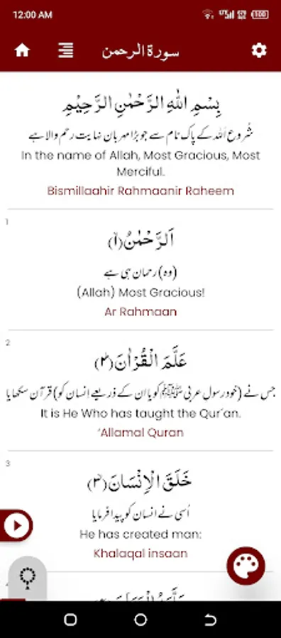 Surah Rahman ( سورة الرحمن ) is the 55th Surah and found in 27th Parah of the Holy Quran. This Surah contains 78 verses, 387 words and 1589 letters, It is revealed in Makkah (مكة) so referred as the “Makki” (مكى) Surah. and Surah Rahman ( سورة الرحمن ) is called the bride of Quran ('Arūs al-Qur'ān عروس القران).