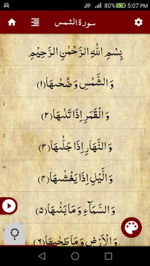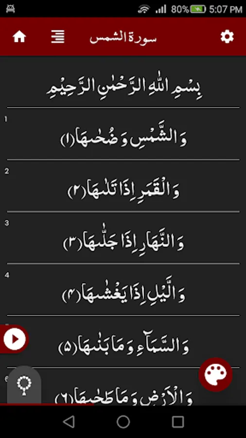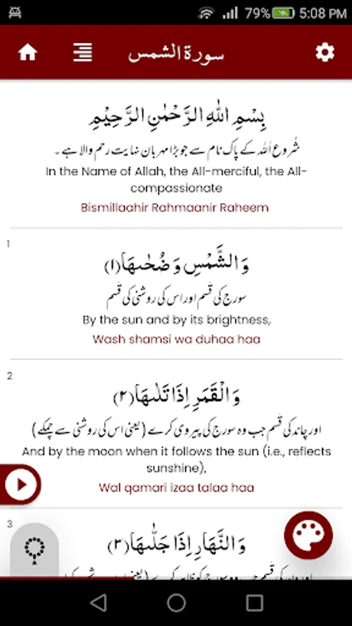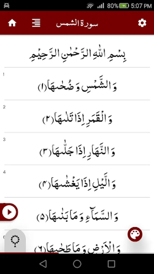 Complete Surah Shams (سورة الشمس) with Offline Audio Recitation and Clear Font.