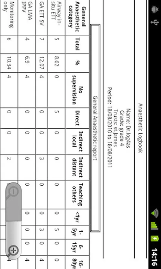 The Log4AS App has been designed to produce the reports required for those training in anaesthetics and consultant anaesthetists. The App allows you to collect operation, resuscitation, and procedural data on your Android mobile device and to print the required reports. The App has been tested by consultant and trainee anaesthetics in several hospitals in the UK.