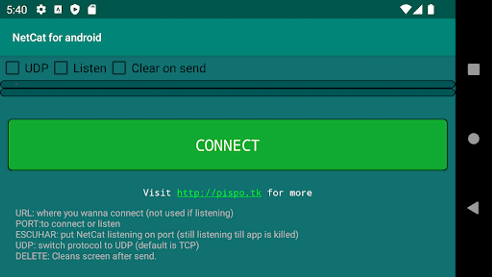 Sinple NetCat application for android.