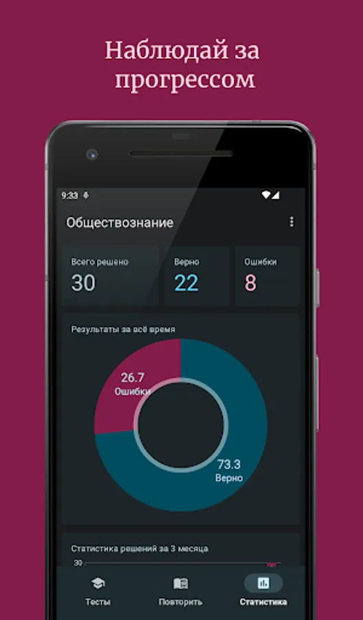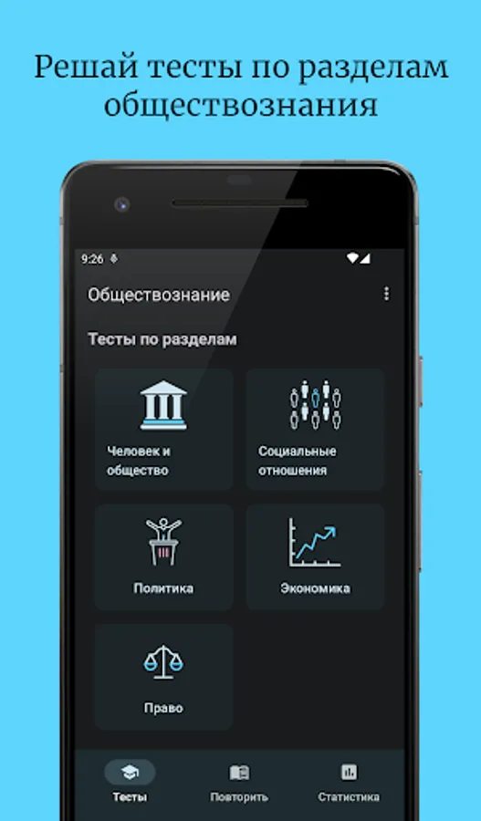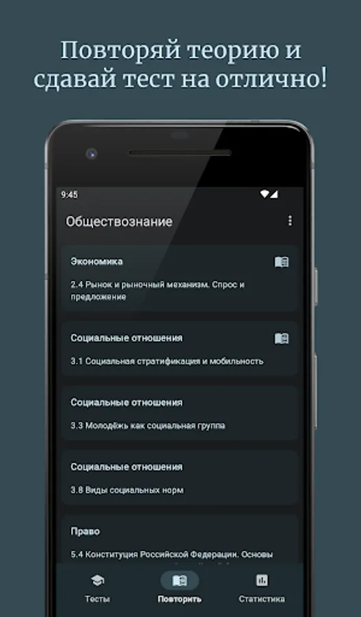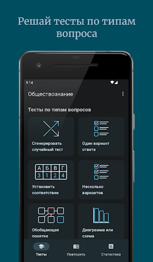 Questions in tests are generated randomly, but are not repeated - the application stores the history of solved questions. All questions are verified, so no rubbish!
