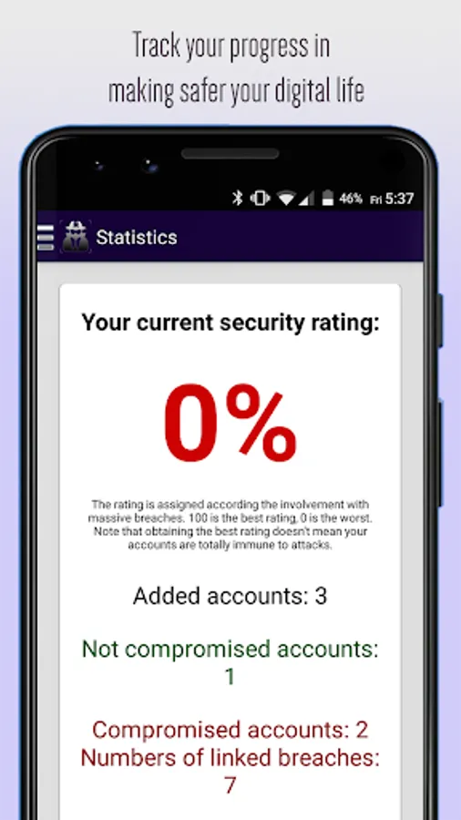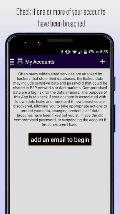 The purpose of this App is to check if your account is associated with known data leaks and monitor it if new breaches are discovered, allowing you to take appropriate actions to protect your data, changing credentials if data breaches have been fixed but you still have the old compromised password, or suspending the account if breaches aren't fixed.