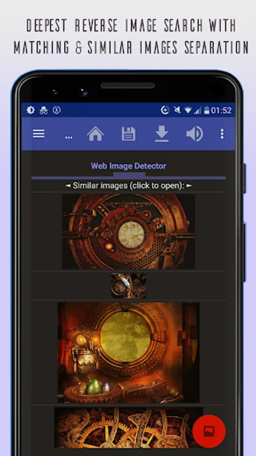 To find info about the image, searching the Internet for similar images and related web pages, and guessing the content according the grabbed information. This feature provides you the related labels, links of the involved web pages, showing matching and visually similar images (if available), allowing you to save also the respective links or the image files.