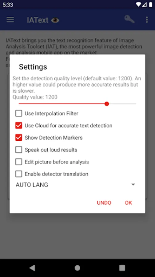 ◙ You can enable the vocal output from settings to configure the App to speak out loud results.