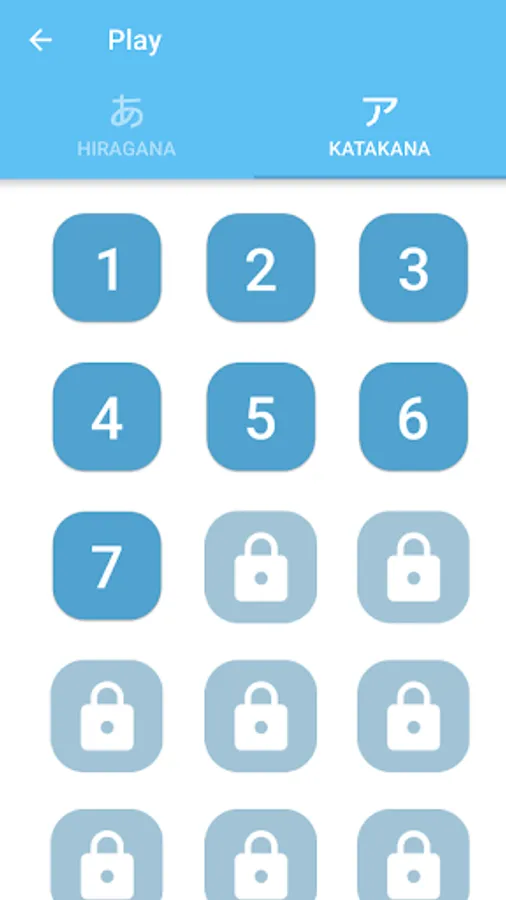 + Infinite Mode: test yourself to see how well you know the lessons you've studied. In this mode every kana that you've learned will appear, both from hiragana and katakana.