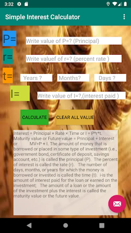 p is principal of the loan (or borrowed) amount or invested amount (face value);