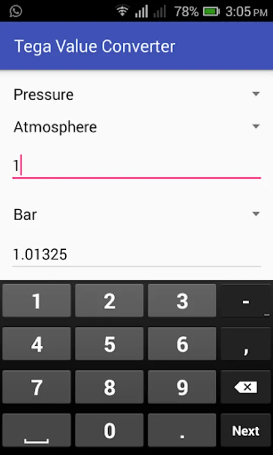 "Pressure"-->"Atmosphere", "Bar", "Kilo Pascal", "Millimeters of Mercury", "Pascal", "Pound per square inch (PSI)"