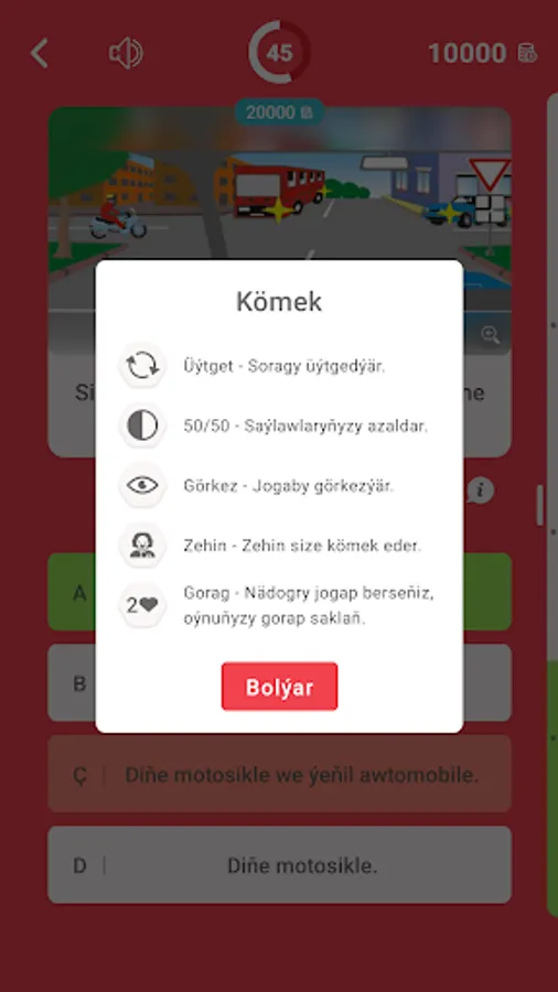 Bu programma 700 sany suratly soraglardan durýar. Soragy ýalňyş bilen ýagdaýyňyzda ýaşyl reňk bilen dogry jogaby görkezýär we size kömekçi bolýar. Bu programmany 🇹🇲 Türkmen dilinde ulanyp bilersiňiz.