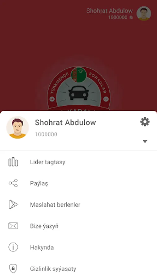 Millioner - 🚗 Ýol kadalary Synagy. 🇹🇲 Türkmençe.