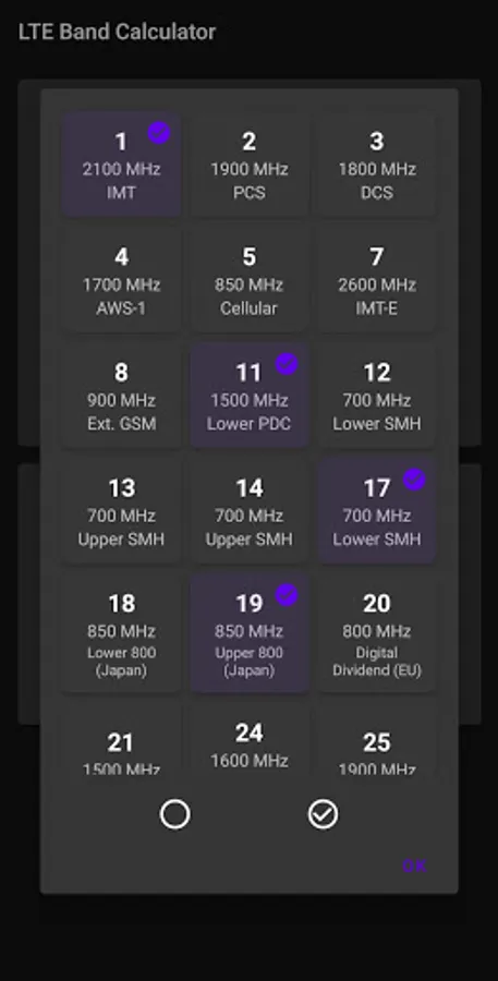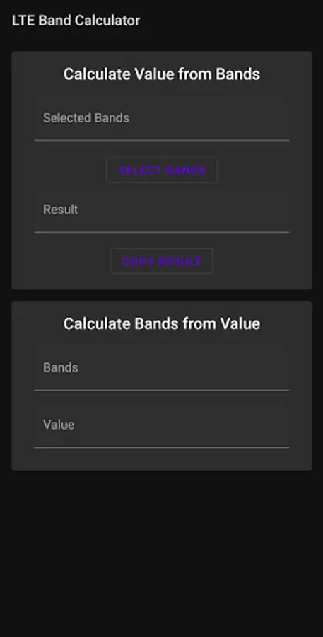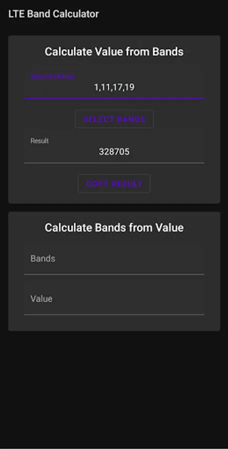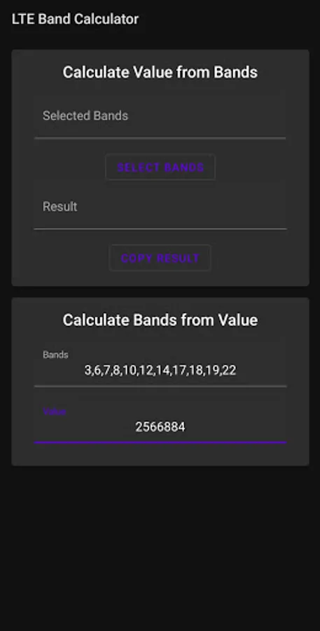 On top of the basic calculation, you can also enter an already-calculated value to see the LTE bands it represents.