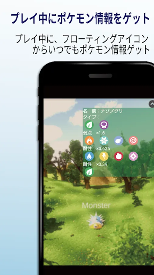 During Pokémon GO gameplay, you can access Pokémon information anytime using the floating icon. Easily check the attributes of captured Pokémon and strategize battles by understanding opponent Pokémon's resistances and weaknesses.