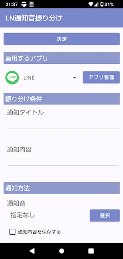 In addition, this app has a sorting rule function that allows you to create various notification methods. For example, you can set a notification sound of "beep beep" for notifications from friends on LINE and a sound of "click" for notifications from news apps. This allows you to quickly identify notifications that you might otherwise miss and manage information efficiently.
