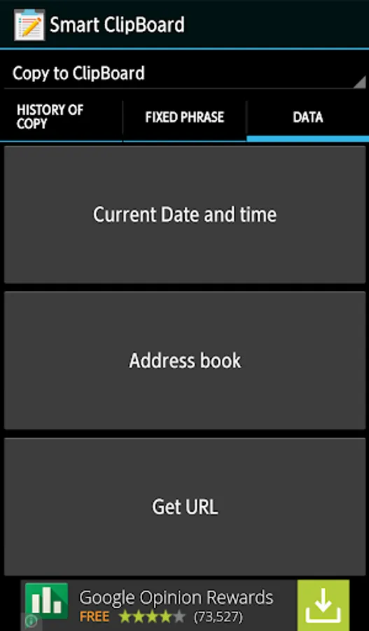 Enhance your smartphone experience with Smart Clipboard! Efficiently manage copied text, easily retrieve predefined phrases and past copy history - all in one handy app! Ad-supported free version available.