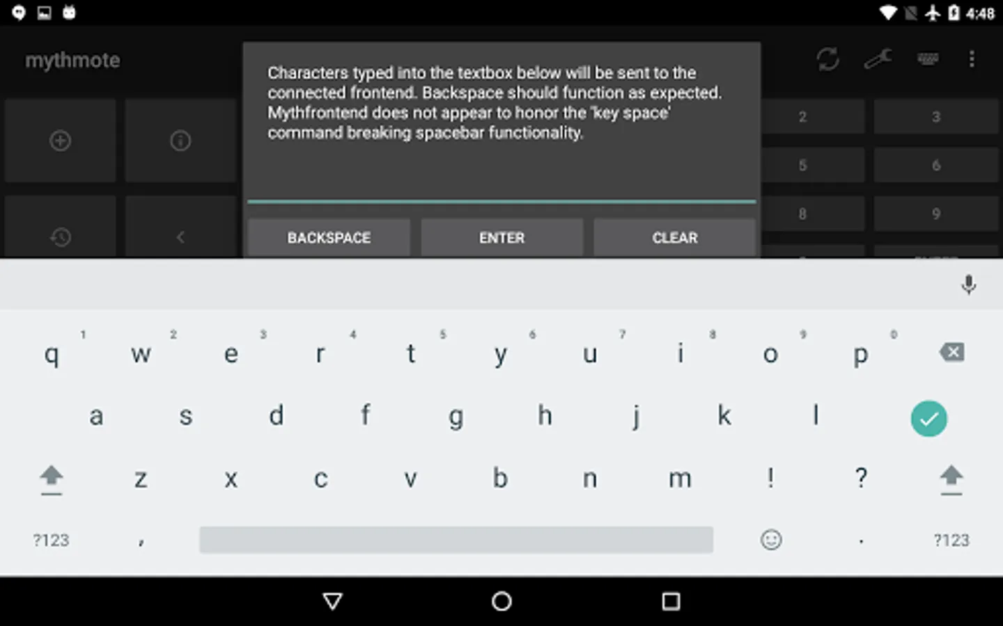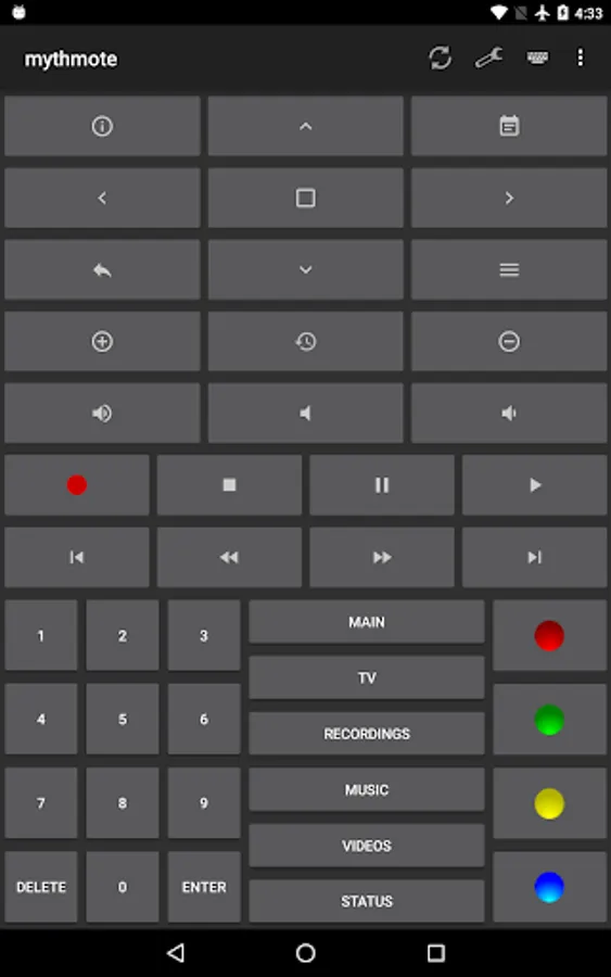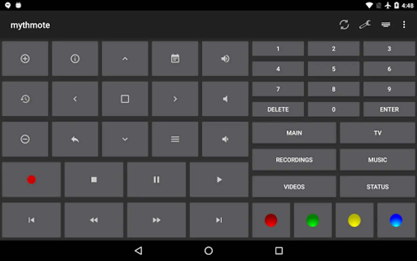 MythMote is an open source android application that controls MythTV frontends. Control is obtained through the frontend's raw text-based TCP socket interface.